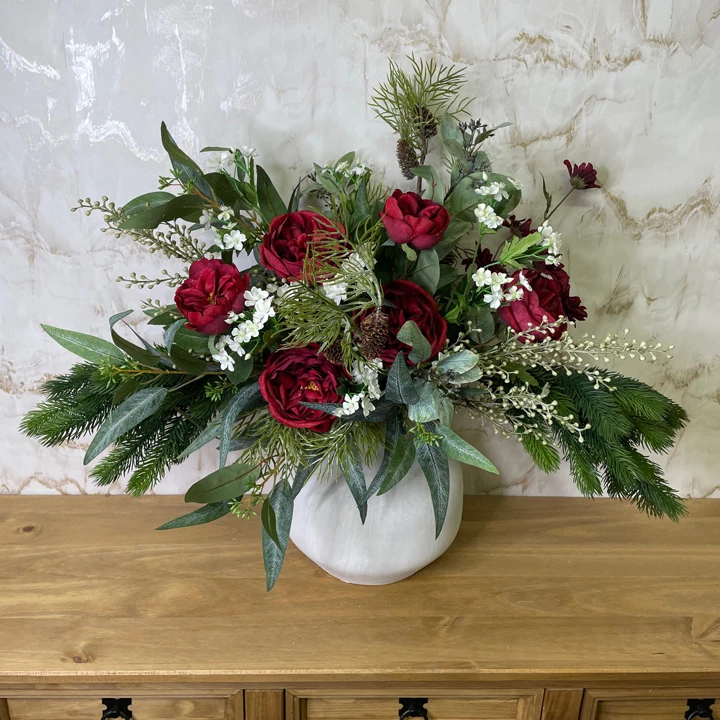 As well as an exceptionally busy website with record breaking sales of faux Christmas flowers and decorations (thank you all soooo much), we've celebrated a family wedding and decorated the venue with artificial flowers that were truly spectacular, reopened the retail space at our West Cumbrian warehouse, created stunning Christmas flower arrangements and wreaths for our sister site, Decoflora Designs, and celebrated Christmas in style at our local golf club!