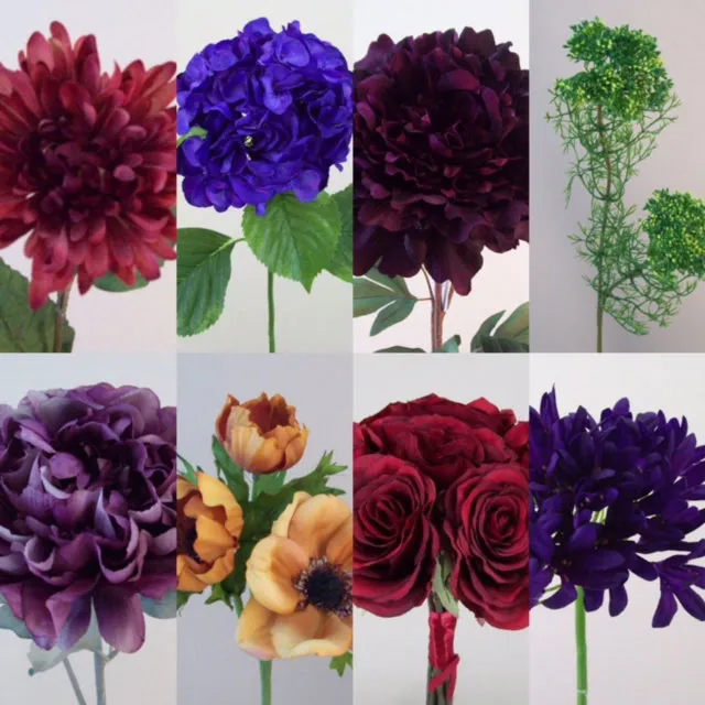 Use the latest fashion colours in the world of artificial flowers and you can create vibrant, warm and rich coloured flower arrangements based around the latest jewel toned colour palette, bringing a bespoke and individual display into your chosen colour scheme. Add a few strategic pieces in copper or rose gold metallics in the shape of candle holders or hurricane lamps into the mix and you will break up with the rich tones with a more earthy and industrial vibe that will draw the theme together in a less feminine manner. Jewel toned accessories help perfectly with the transition period from Autumn to Christmas in way that appeals to the DIY home styler and interior designers so be ready to see a lot more of this theme on the high street!