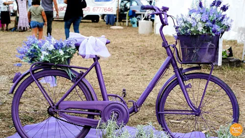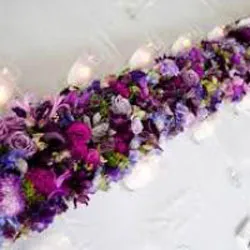 For simple floral table decorations you could decorate the outside of small glass jars with artificial lavender and fill them with flickering candles. Simply wrap an elastic band around your chosen glassware, thread stems of lavender, that have been cut to length, between the elastic and the glass until full and conceal the elastic with ribbon or string and hey presto!
