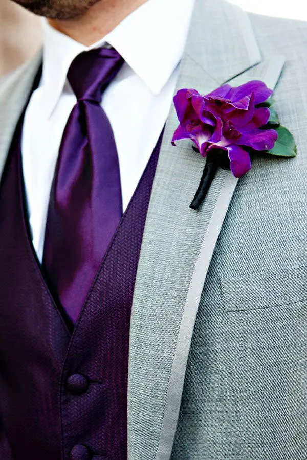 Bow ties and pocket squares in Pantone's ultra violet will look great with crisp white shirts and classic grey suits or waistcoats. Mix and match works well here too! As long as the groom and his groomsmen are wearing the same style of jacket or waistcoat the colours can be different hues of the same colour.